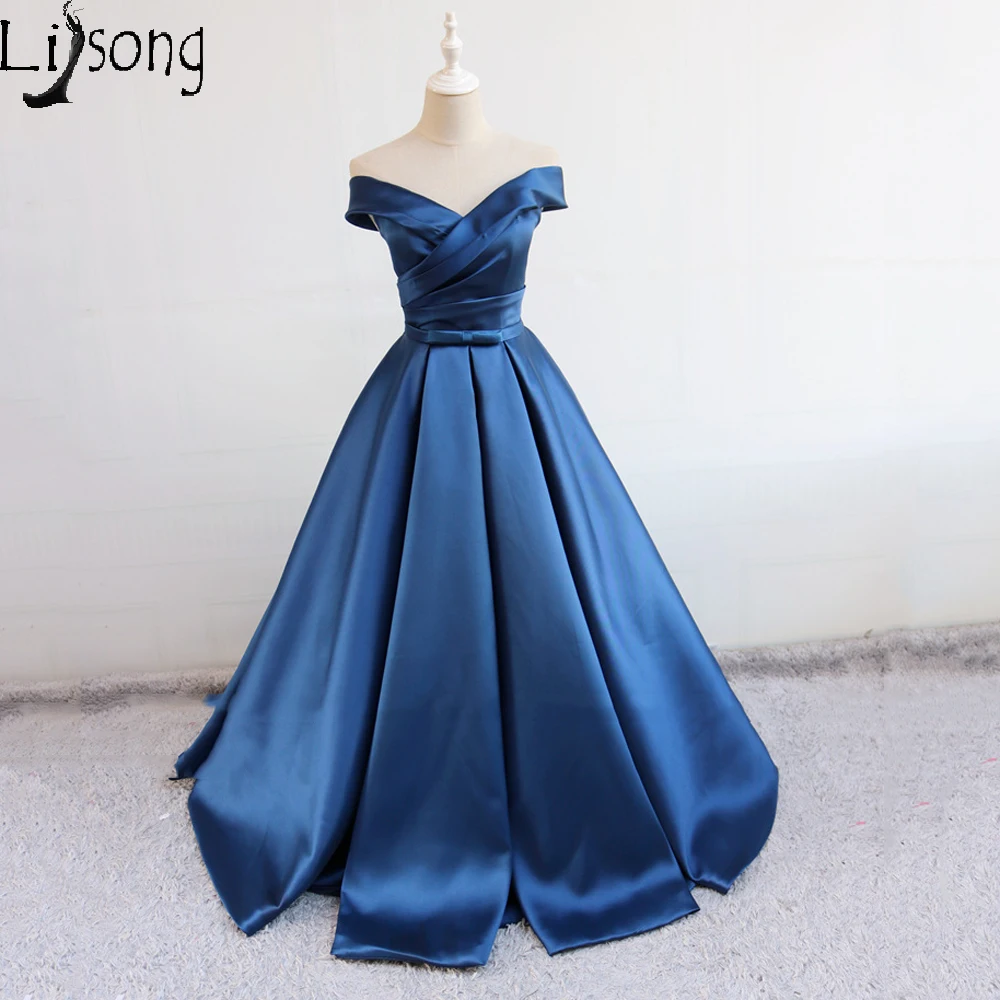 Limited Offer of Elegant Navy Blue Women Evening Dresses Long Off Shoulder Formal Maxi Gowns Womens Party Vintage Simple Dress Vestidos Novia Deals