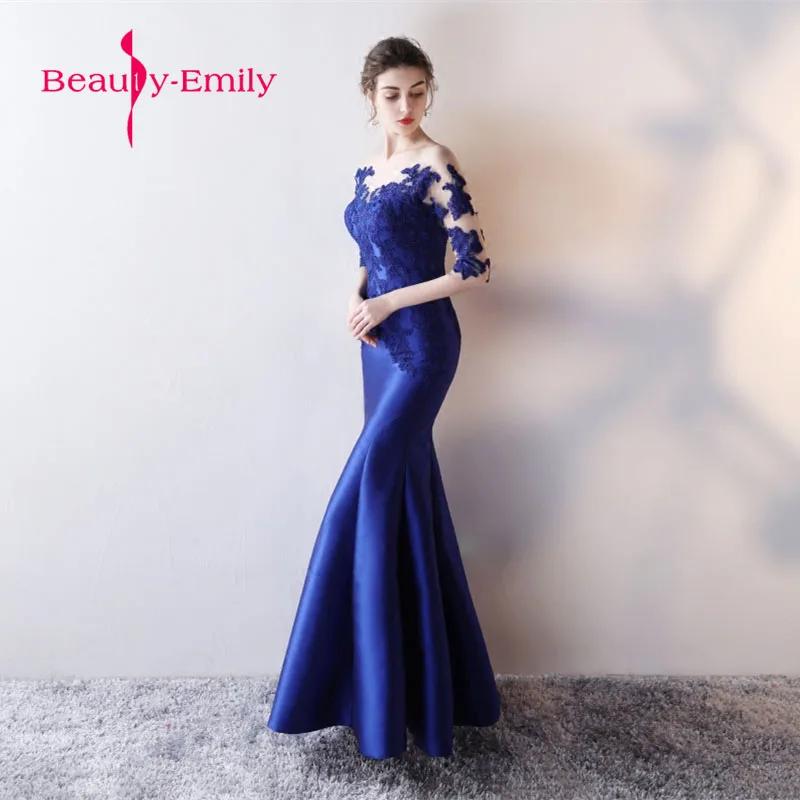 Beautiful Lace Evening Dresses Long royal blue Mermaid Prom gown Vestido de Festa Floor length Muslim formal Party Dresses 2019