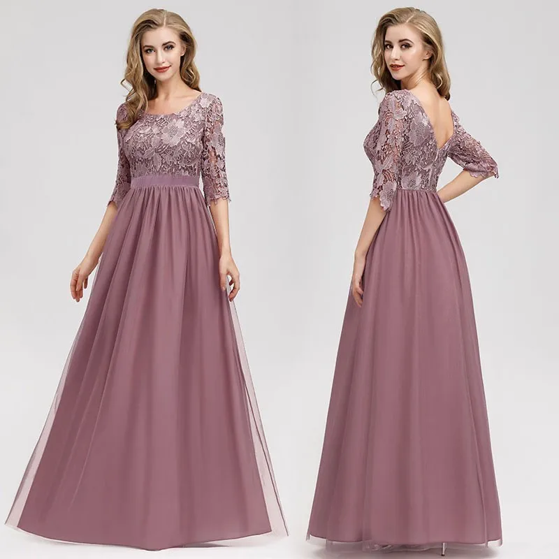 Additional Information of Lace Evening Dresses Long Ever Pretty O-Neck A-Line Half Sleeve Sexy Appliques Elegant Women Evening Gowns Robe De Soiree 2019