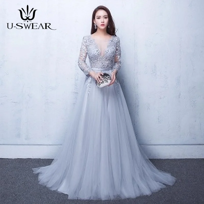 Buy U-SWEAR Sexy Fashion Evening Dresses Long O-Neck 3/4 Sleeves Lace Appliques Court Train Formal Gown Party Dress Vestido De Festa Right Here and Right Now before 2098-12-31 and You will save US $72.36 or 54%, Because before price is changed you will just pay for US $61.64, not in Reguler Price at US $134.00.Yap! This is I mean you will Save 54% / US $72.36
